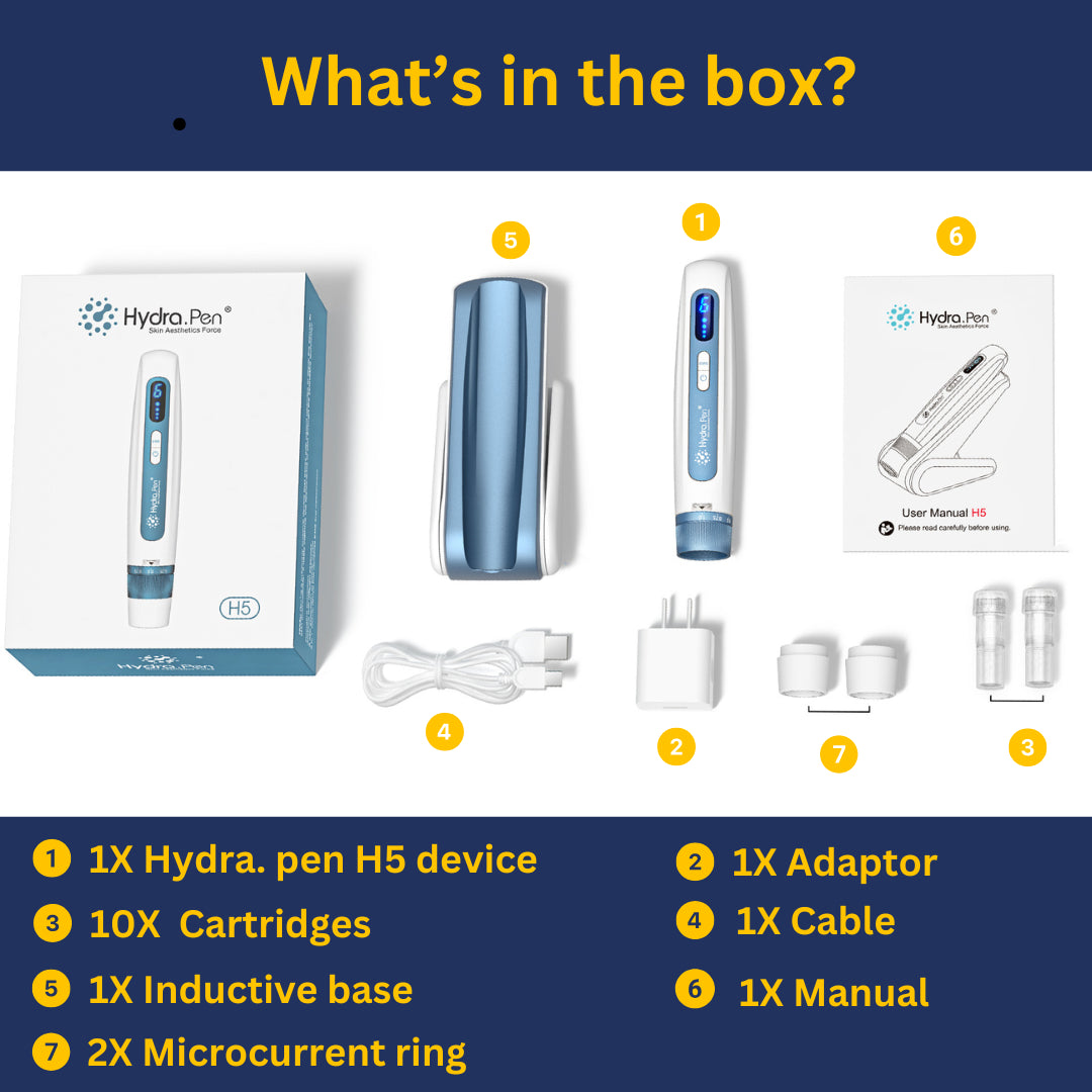Hydra. Pen H5 is a professional microneedling device, which combines the advantages of dermal needling with advanced electroporation and auto-serum technology.